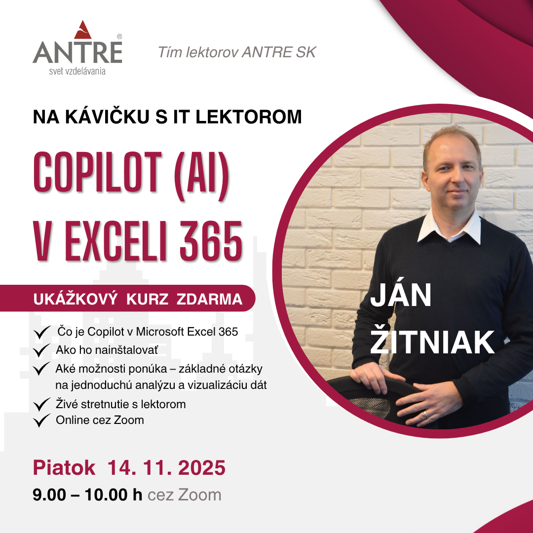 Ak chcete získať prehľad o školeniach, o novinkách v obore, spoznať lektorov a zároveň získať nové počítačové zručnosti, spoznať umelú inteligenciu v programoch, rôzne tipy a triky na príkladoch z praxe, zaregistrujte svoj e-mail